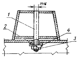 приваркой к формовочной поверхности борта 2. Стационарные сменные элементы 2.1. Установка вкладыша на поддоне на шпильках 1 - шпилька; 2 - платик; 3 - гайка; 4 - отгибная шайба 2.2. Установка вкладыша на