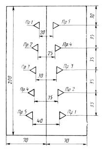 со стороной нижнего основания 15 мм и верхнего 5 мм. Шаблон для проверки угла наклона ребра пироскопа к