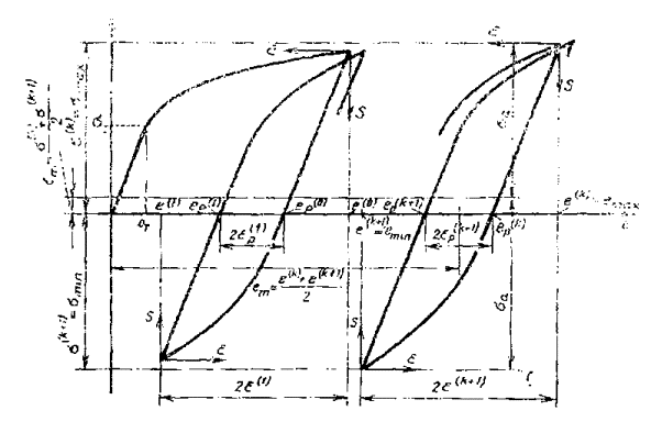 и минимальное напряжения цикла; s(k), S(k) - напряжения в k-ом полуцикле