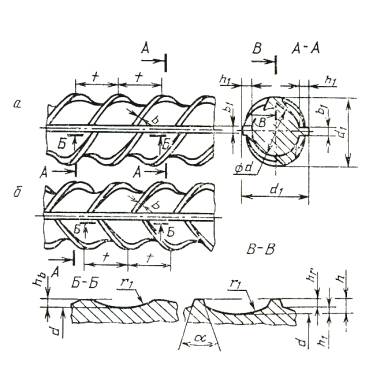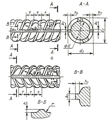 размеров арматурной стали периодического профиля, изготавливаемого по черт. 1a и б, должны