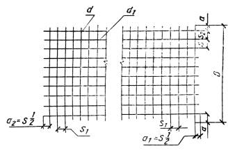 диаметр поперечных стержней d1, основной шаг продольных стержней S, основной шаг