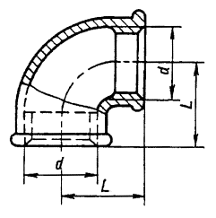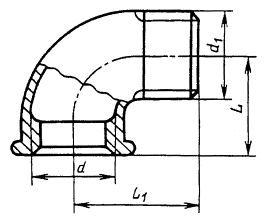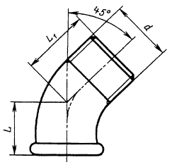 распространяется на проходные угольники с углом 90° и 45° из ковкого чугуна с