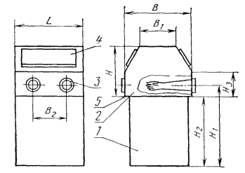 1БП1 1 - подставка; 2 - корпус; 3 - перчатки; 4 - окно; 5 - столешница. Черт. 1 Защитный бокс