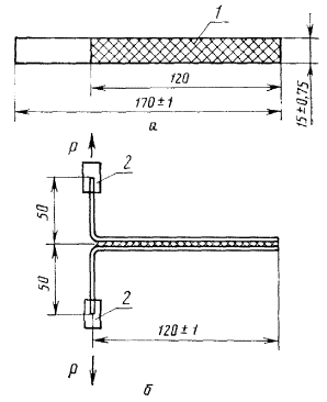 материалов и приведенных к линейным размерам клеевого шва. При расслаивании усилие