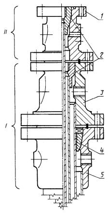1 - трубный оголовок (61); 2 - уплотнительная крестовина (71) Одноствольная