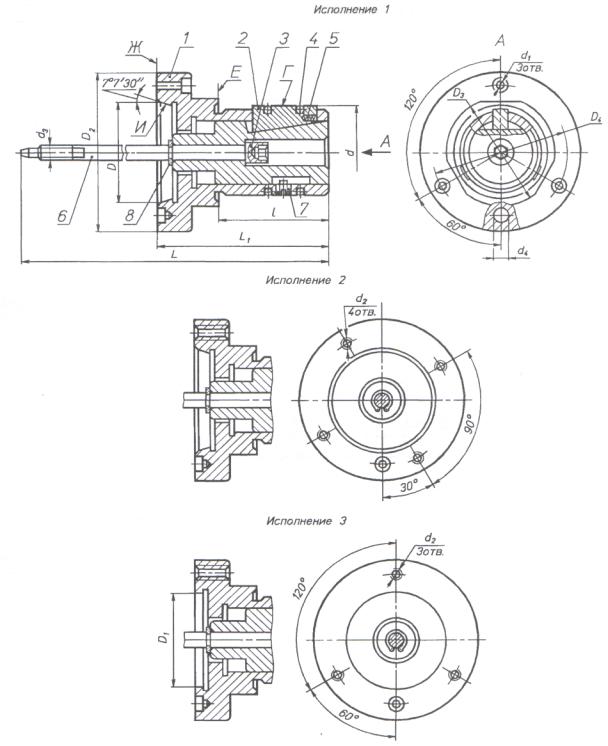 чертежам приложения А четырех типов: 1 - кулачковые шпиндельные; 2 - кулачковые шпиндельные с