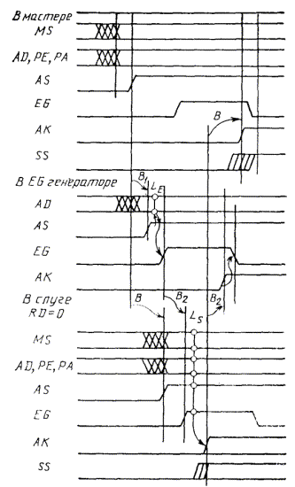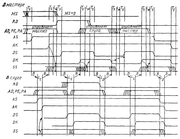 цикле в случае обращения к области регистров управления и статуса (см. табл. VI), когда MS-1 или MS-3 и