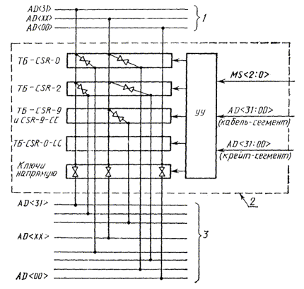 между разрядами AD кабель-сегмента и разрядами AD крейт-сегмента при выборке регистра CSR# 9 управления таймерами модулей, а также при выборке регистра CSR# 9-СС управления таймерами