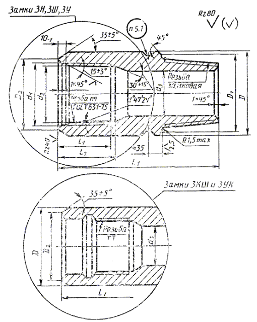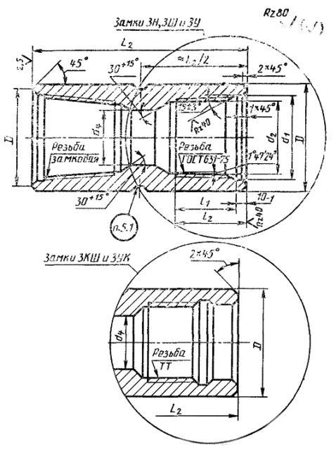 соединения замков ЗН, ЗШ и ЗУ с трубами), а также конусность по наружному