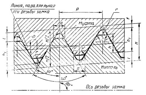 замков ЗШК-178 и 3 мм для остальных замков. 4.8. Шаг резьбы, половина угла профиля и высота профиля всех резьб,