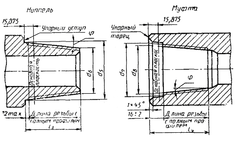 мест не допускаются. 2.4. Поверхности упорного уступа ниппеля и упорного торца муфты должны