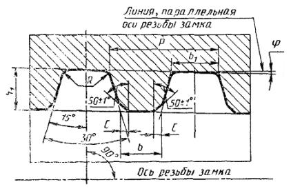 длиной, в количестве не более 3 % замков от партии. 1.6. Форма и размеры профиля замковой резьбы (правой и левой) должны