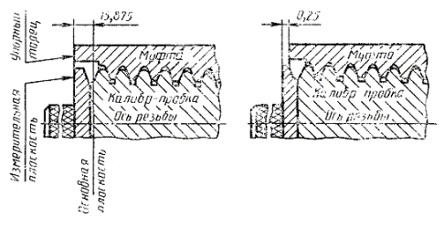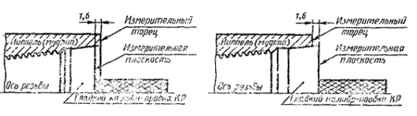 мм, а для остальных резьб измерительная плоскость калибра должна заходить за