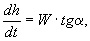 окружная скорость движения бумаги на барабане самописца, см/с; α - угол наклона касательной к кривой h(t) в