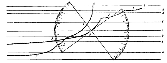 Трафарет передвигают вдоль диаграммы до касания наклонной линии со снятой во