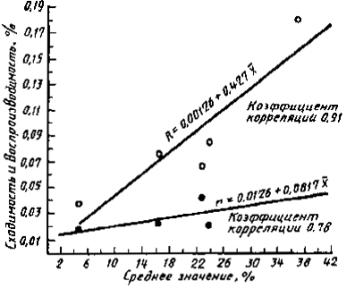 сходимость и воспроизводимость в процентах. Зависимость