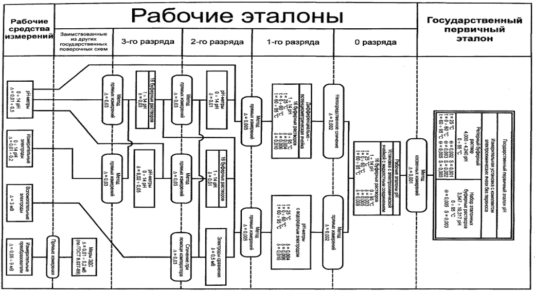 слова: поверочная схема, первичный эталон шкалы рН, рабочие эталоны рН, рабочие