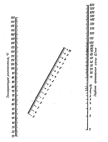 размягчения битума, с точкой на правой шкале, соответствующей значению глубины