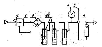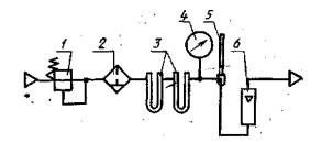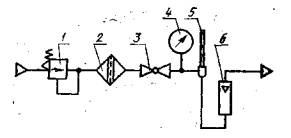 латунный; 4 - манометр образцовый или U-образный; 5 - термометр; 6 - ротаметр