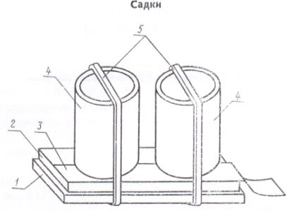 материала, прикрепляемой к концу березовой дощечки; канавку засыпают, землю