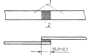 виде полос длиной (110,0 ± 1,0) мм, шириной (10,0 ± 0,5) мм, склеенных