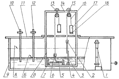 платформа для груза; А - уровень жидкости по методу А; Б -
