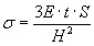 Максимальное напряжение (ниже предела упругости) (s) в Н/м2, возникающее в средней части выпуклой поверхности,