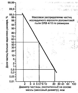 Рисунок 11 - Распределение частиц доломитовой пыли по размерам Постоянный поток воздуха должен проходить