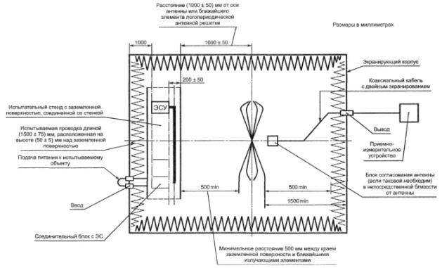 устойчивость ЭСУ в условиях свободного поля. Испытательная камера. Вид в