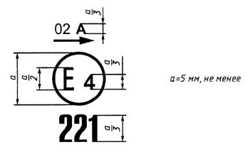 знака официального утверждения Знак официального утверждения состоит из: 4.2.1 Международного знака официального утверждения, включающего: 4.2.1.1 круг, в котором проставлена буква Е, за которой следует отличительный номер страны, предоставившей официальное утверждение 1); 1) 1 - Германия, 2 - Франция, 3 - Италия, 4 -