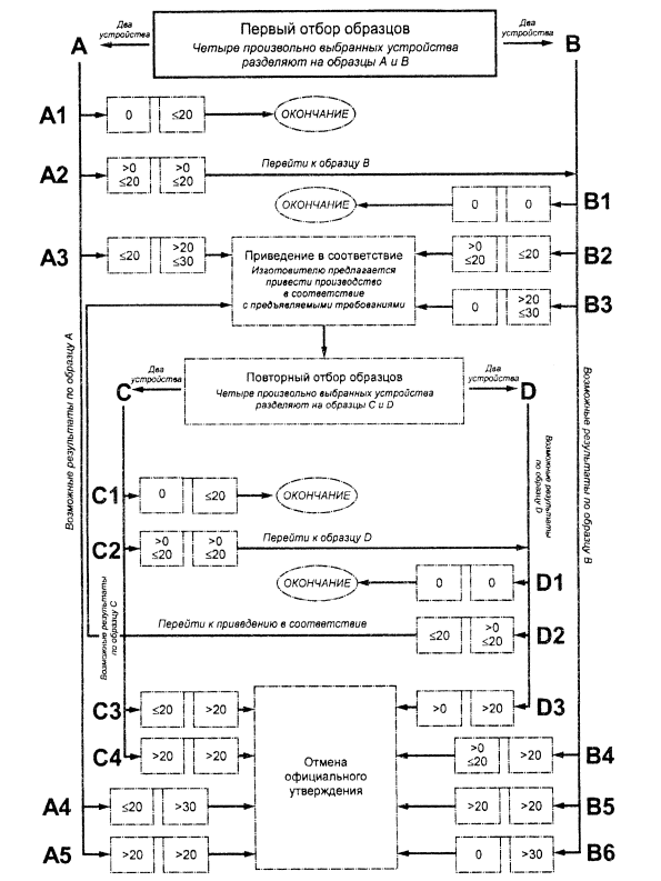 В случаях A3, В2 и В3 в течение двух месяцев после уведомления необходимо провести повторный отбор образцов: из партии продукции, изготовленной после приведения производства в соответствие с предъявляемыми требованиями, отбираются третьи два образца С и четвертые два образца D.