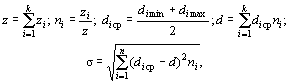 отклонение размеров частиц σ, мкм (см. приложение 3); содержание