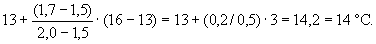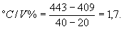 температур 5 - 50 % отгона при средней скорости дистилляции 1,5 и 2,0 °C/V %. для °C/V % = 1,5 составляет 13 °С; для °C/V % = 2,0
