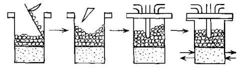 заполнения реактора, установки крышки и выравнивания поверхности Пробу медленно засыпают по палочке