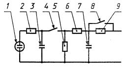 - зарядный резистор; 3 - зарядный конденсатор; 4 - коммутирующий ключ; 5