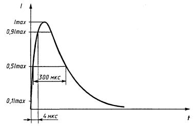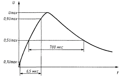 При испытаниях подают по 10 импульсов положительной и отрицательной полярности. Рисунок 4 -