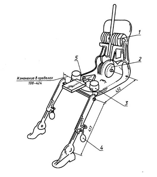 - если механизм скользит назад, ему дают возможность скользить до тех пор, пока не отпадет необходимость в использовании передней ограничительной горизонтальной нагрузки на коленный Т-образный шарнир, т.е. до тех пор, пока задняя часть механизма не соприкоснется со спинкой сиденья. В случае необходимости следует измерить положение голени и ступни.