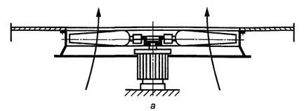 где М - расчетная масса колеса вентилятора, кг; п - частота вращения вентилятора, мин-1. Балансировочные грузы должны привариваться к внутренней поверхности ступицы вентилятора. Допускается их крепление с помощью заклепок. 4.2.6.10. Вентиляторы могут быть оснащены следующими видами приводов: - непосредственный (колесо вентилятора установлено на вал электродвигателя с использованием шпоночного соединения); - с клиноременной передачей; - редукторный. Типы приводов приведены на рисунках 5 и 6.
