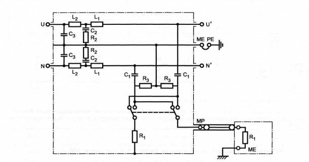 измерительное заземление; РЕ - защитное заземление; МР - точка измерений