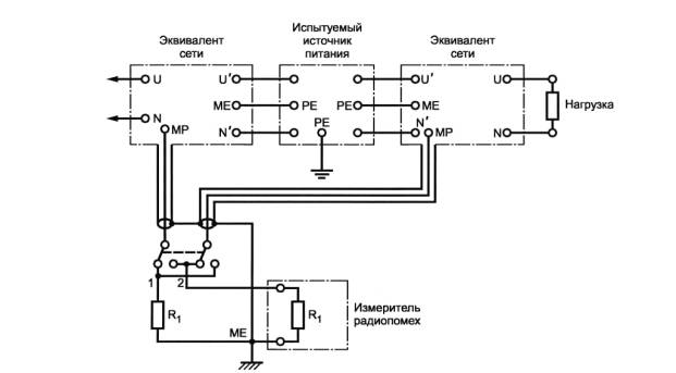 Эквивалент сети должен использоваться с измерителем радиопомех, имеющим входное