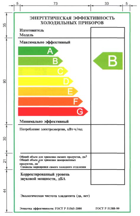 холодильных приборов и содержание этикетки эффективности, прикладываемой к