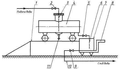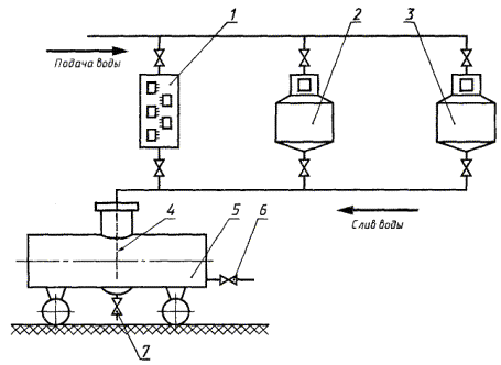 1 - эстакада; 2 - наливной кран; 3 - шланг; 4 - ТМ: 5,
