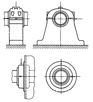 вибрации упорных подшипников. Типичные положения точек измерений приведены на