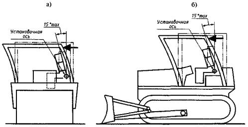 а) Боковая нагрузка на каток с поперечно установленным сиденьем б) Поперечная нагрузка на гусеничный трактор Рисунок 15 - Допускаемое вращение верхней части DLVотносительно установочной оси 8.7 Если продольную нагрузку