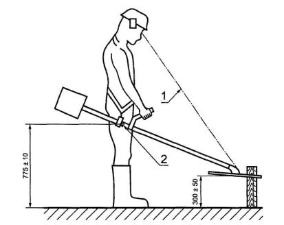 Вибрацию на рукоятках кустореза измеряют в трех режимах. 4.1 Режим холостого хода Измерения проводят при работе двигателя на холостом ходу с отключенным режущим приспособлением и частоте вращения вала двигателя, рекомендованной изготовителем; кусторез при этом необходимо удерживать за обе рукоятки. 4.2 Режим полной нагрузки Режим полной нагрузки кустореза обеспечивается при полном открытии дросселя. При разрезании древесины частота вращения двигателя должна регулироваться силой резания. Резание должно проводиться поперек волокон древесины. Расстояние между центром режущего полотна кустореза и землей должно быть (300 ± 50) мм (рисунок 3).