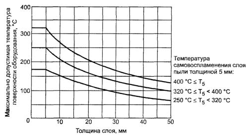 самовоспламенения слоя пыли: Наименьшая температура горячей поверхности,