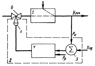 схема замкнутой АСР с регулятором непрямого действия: 1 -