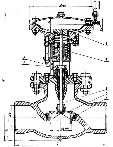 мембраны, клапана, пружины и крышки. Исполнительное устройство состоит из стойки, пружины, поршня, клапана 1