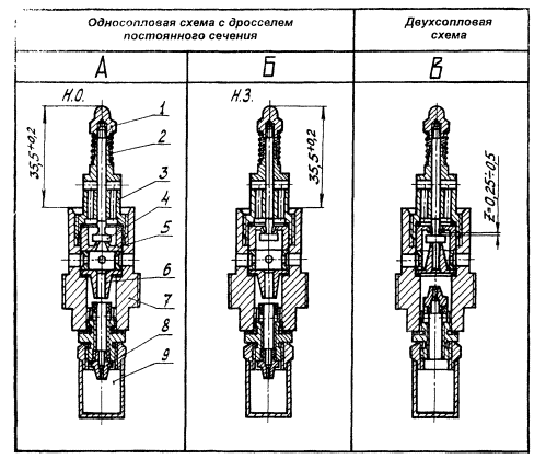заглушки 19 на гильзе 16. При этом должен быть выдержан размер А = (54 ± 0,2) мм. С помощью винта 9, шайбы 8 и гайки 7 в узле клапана крепится датчик