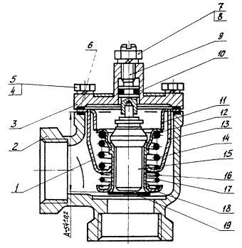 состоит из корпуса, закрепленного в корпусе седла, штока с клапаном и сильфона